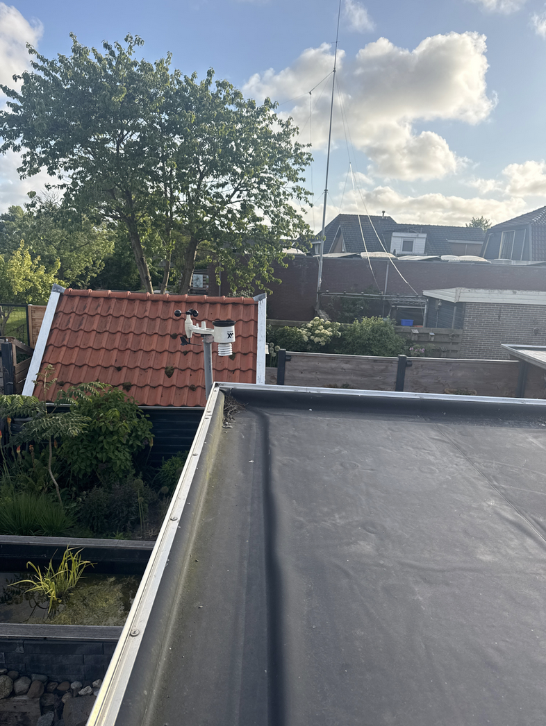 - The mast is much lower than the recommended height, and the temperature measurements are certainly affected by the dark-coloured roof.